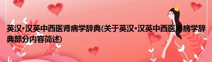 英汉·汉英中西医肾病学辞典(关于英汉·汉英中西医肾病学辞典部分内容简述)
