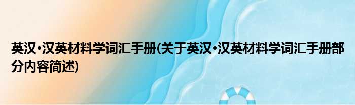 大家好,今天小方来说说一篇关于英汉·汉英材料学词汇手册,关于英汉·汉英材料学词汇手册部分内容简述的文章,那么现在就为大家来简单介绍下,希望对各位小伙伴们有所帮助。