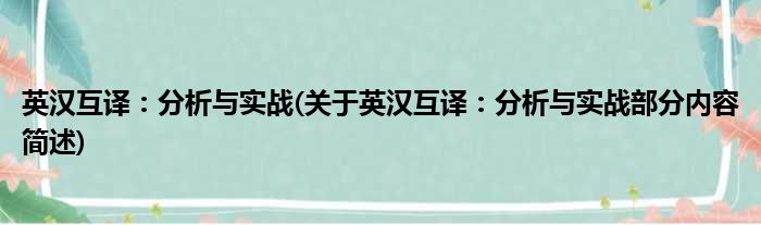 英汉互译:分析与实战(关于英汉互译:分析与实战部分内容简述)