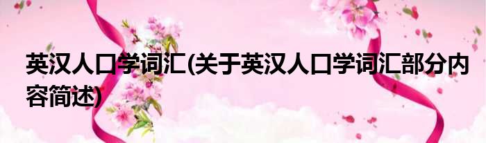 英汉人口学词汇(关于英汉人口学词汇部分内容简述)