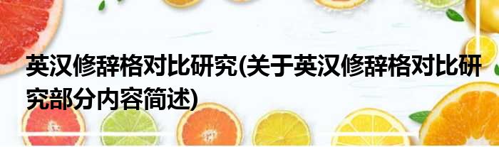 英汉修辞格对比研究(关于英汉修辞格对比研究部分内容简述)