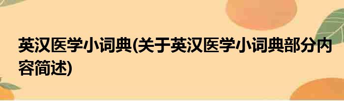 英汉医学小词典(关于英汉医学小词典部分内容简述)