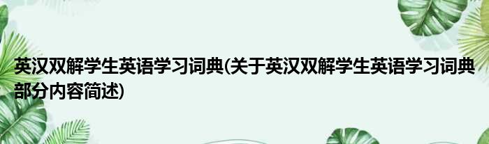 英汉双解学生英语学习词典(关于英汉双解学生英语学习词典部分内容简述)