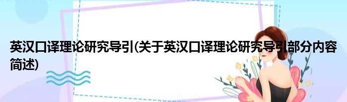 大家好,今天小方来说说一篇关于英汉口译理论研究导引,关于英汉口译理论研究导引部分内容简述的文章,那么现在就为大家来简单介绍下,希望对各位小伙伴们有所帮助。