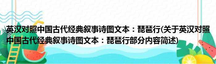 英汉对照中国古代经典叙事诗图文本:琵琶行(关于英汉对照中国古代经典叙事诗图文本:琵琶行部分内容简述)