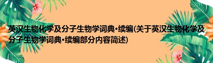 英汉生物化学及分子生物学词典·续编(关于英汉生物化学及分子生物学词典·续编部分内容简述)