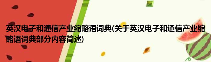 英汉电子和通信产业缩略语词典(关于英汉电子和通信产业缩略语词典部分内容简述)