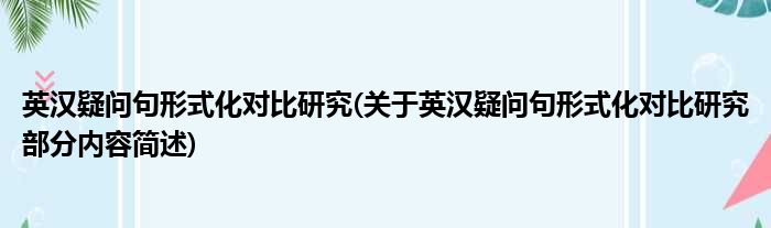 英汉疑问句形式化对比研究(关于英汉疑问句形式化对比研究部分内容简述)