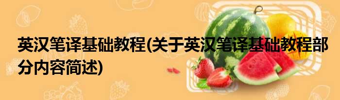 英汉笔译基础教程(关于英汉笔译基础教程部分内容简述)