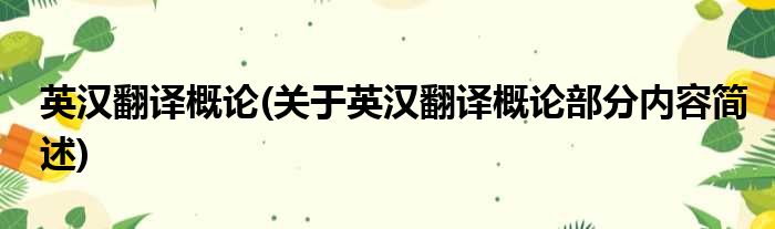 英汉翻译概论(关于英汉翻译概论部分内容简述)