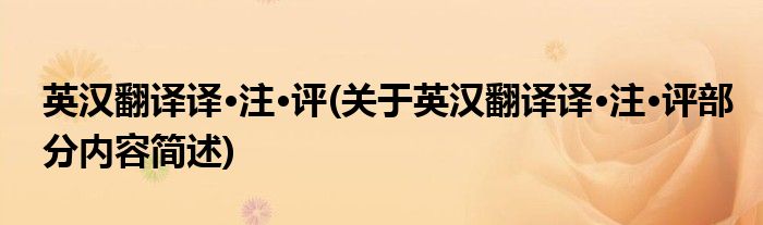 英汉翻译译·注·评(关于英汉翻译译·注·评部分内容简述)