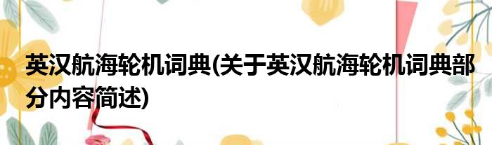 英汉航海轮机词典(关于英汉航海轮机词典部分内容简述)