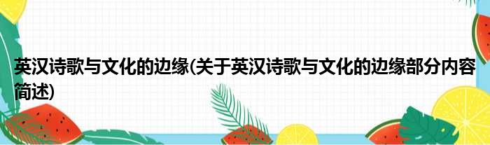 英汉诗歌与文化的边缘(关于英汉诗歌与文化的边缘部分内容简述)
