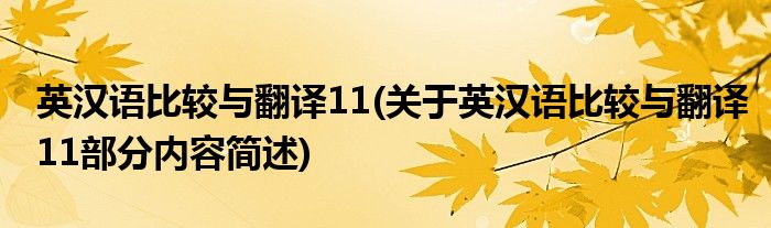 英汉语比较与翻译11(关于英汉语比较与翻译11部分内容简述)