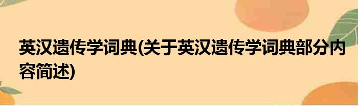 英汉遗传学词典(关于英汉遗传学词典部分内容简述)