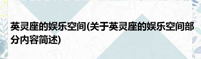 英灵座的娱乐空间(关于英灵座的娱乐空间部分内容简述)