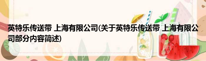 英特乐传送带 上海有限公司(关于英特乐传送带 上海有限公司部分内容简述)