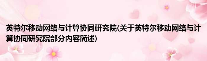 英特尔移动网络与计算协同研究院(关于英特尔移动网络与计算协同研究院部分内容简述)