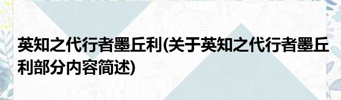 英知之代行者墨丘利(关于英知之代行者墨丘利部分内容简述)