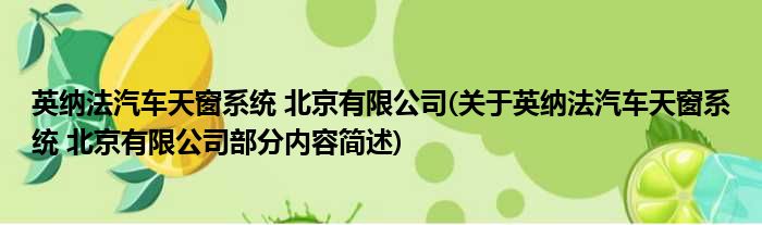 英纳法汽车天窗系统 北京有限公司(关于英纳法汽车天窗系统 北京有限公司部分内容简述)