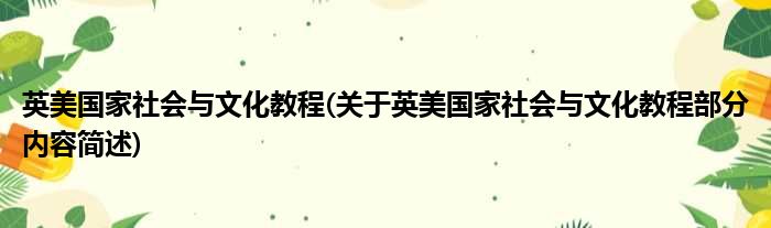 大家好,今天小方来说说一篇关于英美国家社会与文化教程,关于英美国家社会与文化教程部分内容简述的文章,那么现在就为大家来简单介绍下,希望对各位小伙伴们有所帮助。