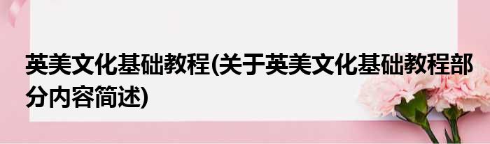 英美文化基础教程(关于英美文化基础教程部分内容简述)