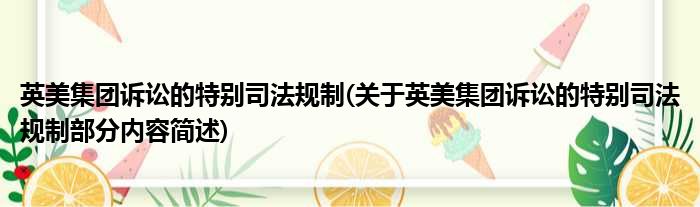 英美集团诉讼的特别司法规制(关于英美集团诉讼的特别司法规制部分内容简述)