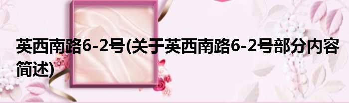 英西南路6-2号(关于英西南路6-2号部分内容简述)