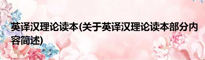 大家好,今天小方来说说一篇关于英译汉理论读本,关于英译汉理论读本部分内容简述的文章,那么现在就为大家来简单介绍下,希望对各位小伙伴们有所帮助。
