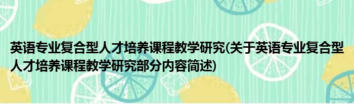 英语专业复合型人才培养课程教学研究(关于英语专业复合型人才培养课程教学研究部分内容简述)