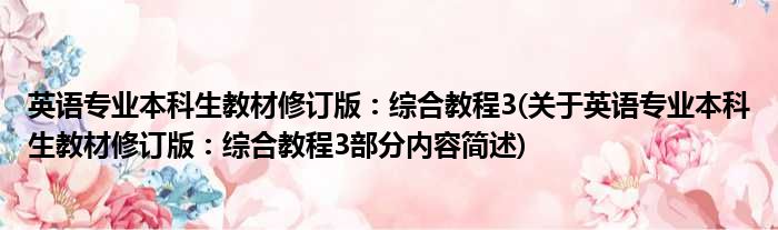 英语专业本科生教材修订版:综合教程3(关于英语专业本科生教材修订版:综合教程3部分内容简述)