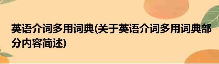 英语介词多用词典(关于英语介词多用词典部分内容简述)