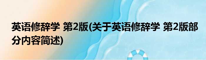 大家好,今天小方来说说一篇关于英语修辞学 第2版,关于英语修辞学 第2版部分内容简述的文章,那么现在就为大家来简单介绍下,希望对各位小伙伴们有所帮助。