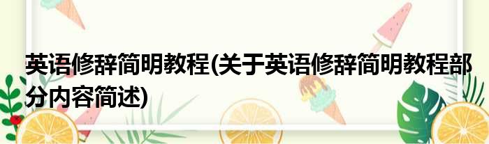 英语修辞简明教程(关于英语修辞简明教程部分内容简述)