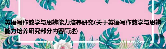 英语写作教学与思辨能力培养研究(关于英语写作教学与思辨能力培养研究部分内容简述)