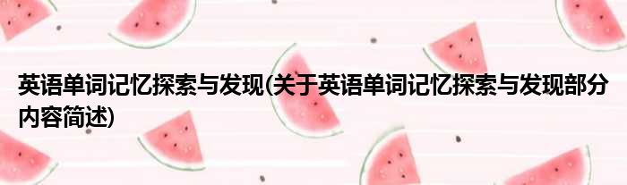 英语单词记忆探索与发现(关于英语单词记忆探索与发现部分内容简述)