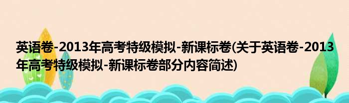 英语卷-2013年高考特级模拟-新课标卷(关于英语卷-2013年高考特级模拟-新课标卷部分内容简述)