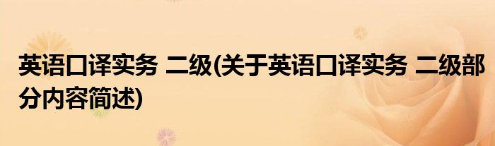 英语口译实务 二级(关于英语口译实务 二级部分内容简述)