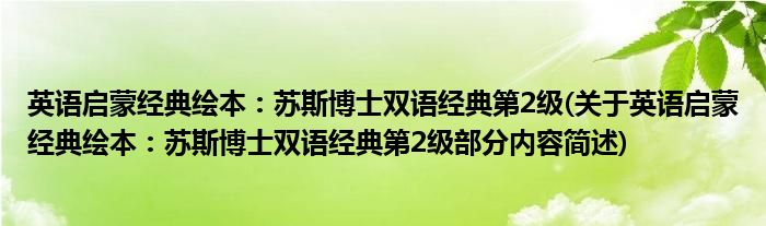 大家好,今天小方来说说一篇关于英语启蒙经典绘本:苏斯博士双语经典第2级,关于英语启蒙经典绘本:苏斯博士双语经典第2级部分内容简述的文章,那么现在就为大家来简单介绍下,希望对各位小伙伴们有所帮助。