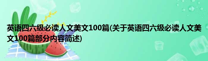 英语四六级必读人文美文100篇(关于英语四六级必读人文美文100篇部分内容简述)
