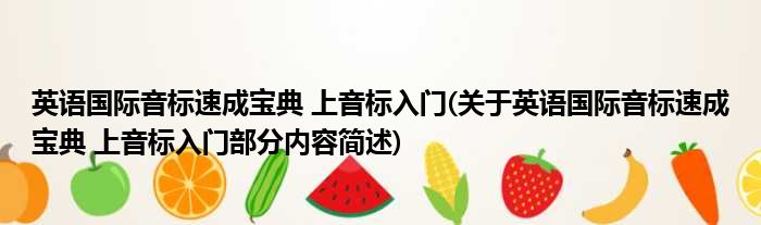 英语国际音标速成宝典 上音标入门(关于英语国际音标速成宝典 上音标入门部分内容简述)