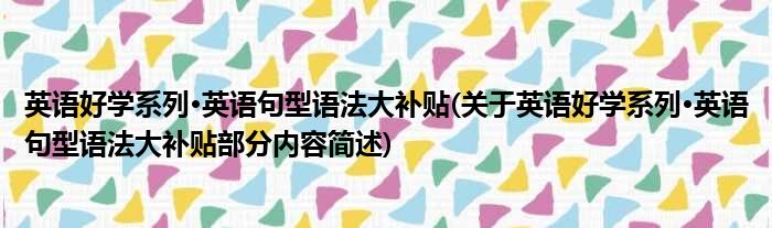 1、 《英语好学系列·英语句型语法大补贴》通过扎实的基本语法、句型学习,辅助读者稳固而切实地建构英语的基础。书中附有详尽生动的例句,系统清晰的句型和语法重点,并且提供大量练习题。本书是由北京大学出版社出版。
