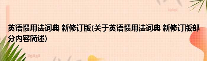 英语惯用法词典 新修订版(关于英语惯用法词典 新修订版部分内容简述)