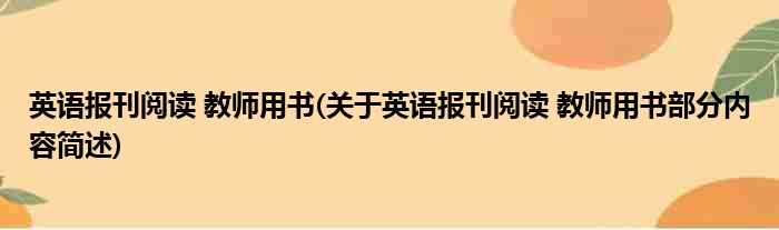 大家好,今天小方来说说一篇关于英语报刊阅读 教师用书,关于英语报刊阅读 教师用书部分内容简述的文章,那么现在就为大家来简单介绍下,希望对各位小伙伴们有所帮助。