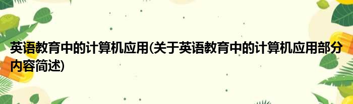 英语教育中的计算机应用(关于英语教育中的计算机应用部分内容简述)