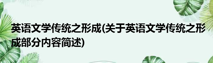 英语文学传统之形成(关于英语文学传统之形成部分内容简述)