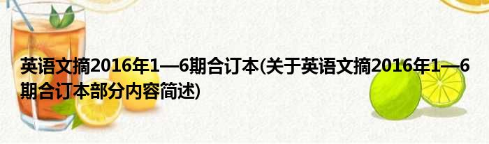 大家好,今天小方来说说一篇关于英语文摘2016年1—6期合订本,关于英语文摘2016年1—6期合订本部分内容简述的文章,那么现在就为大家来简单介绍下,希望对各位小伙伴们有所帮助。