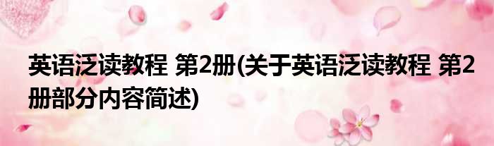 英语泛读教程 第2册(关于英语泛读教程 第2册部分内容简述)
