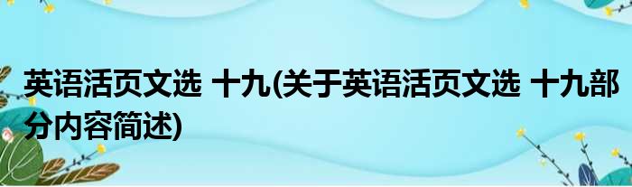 英语活页文选 十九(关于英语活页文选 十九部分内容简述)