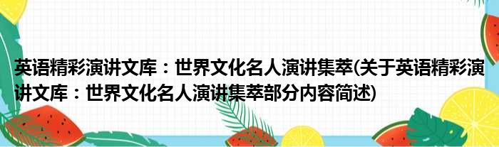 英语精彩演讲文库:世界文化名人演讲集萃(关于英语精彩演讲文库:世界文化名人演讲集萃部分内容简述)